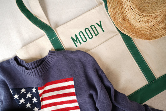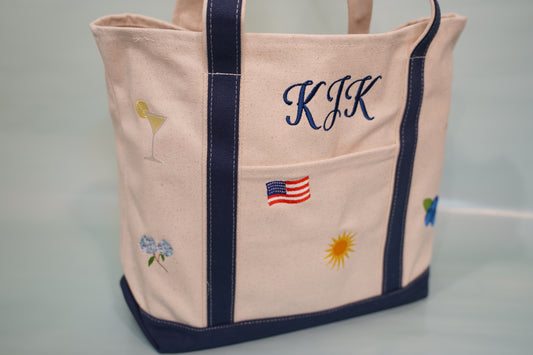 Custom Embroidered Americana Canvas Tote Bag with Monogram & Summer Icons